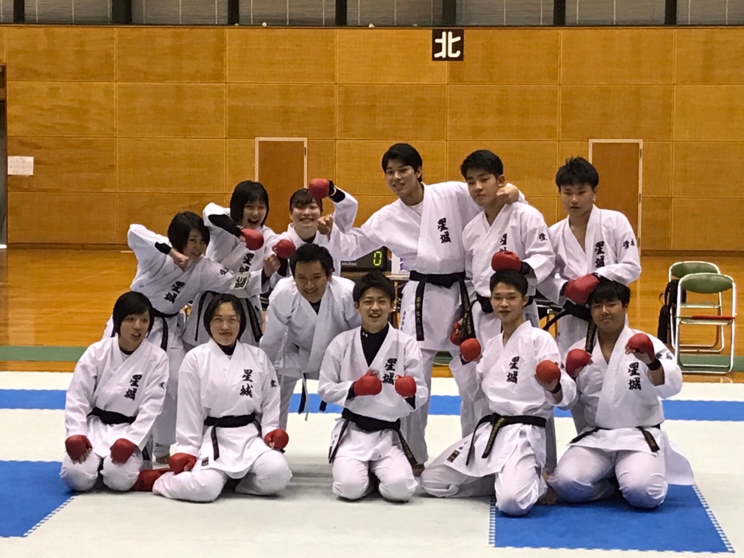 碧南市臨海体育館にて第13回星空杯争奪空手道大会が開催されました。今年度も多くの道場にご参加いただき、86名27チームの中学生が集まりました。選手の中には3月の中学選抜に出場するような高いレベルの選手もいました。道場の後輩たちのパフォーマンスに、高校生も刺激を受けたと思います。