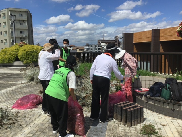 担当の花壇の整備は炎天下の中での実施でしたが,体調不良者など無く無事終えることができました。生徒だけで実施の予定でしたが,地域の方々や保護者の方々が協力してくださったことで,とても充実した活動になりました。改めて,お礼申し上げます。