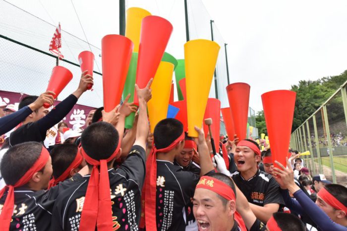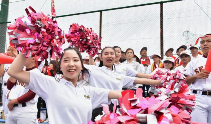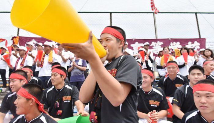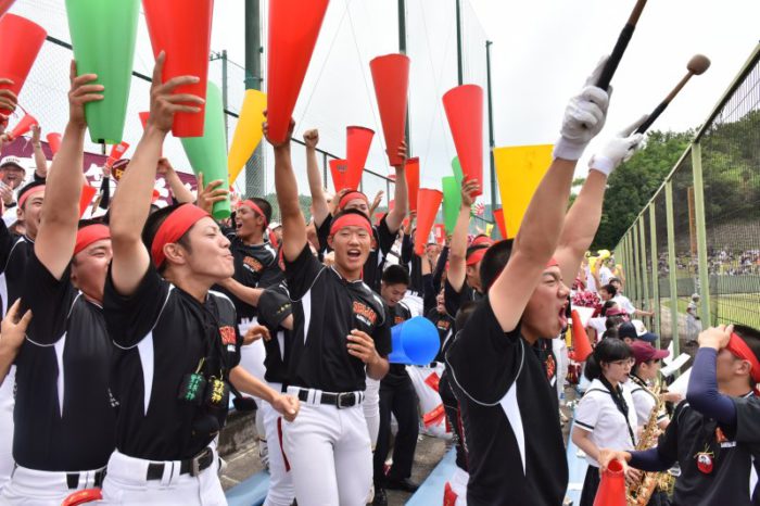 写真は、野球部の応援団と、星城応援団【TEAM☆城】のようすです。
