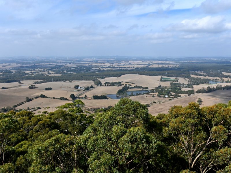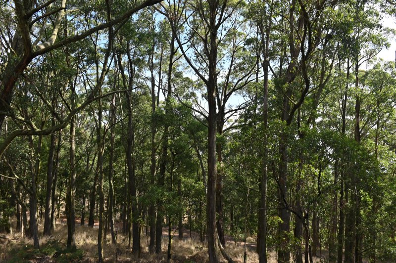 →…Martin先生と丹下さんと伊藤さんとで行った先はなんと「野生のコアラ生息地」なのでした。到着した森は、コアラの主食となっているユーカリの原生林でした。観察学習用?でしょうか。展望台もあって目線を高くしてコアラの観察ができるようになっています。