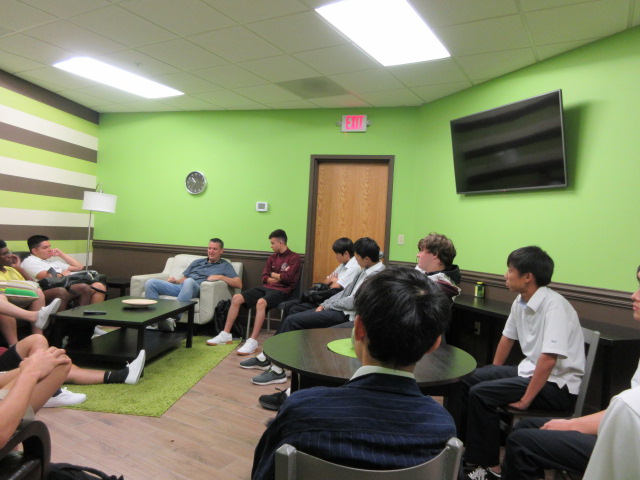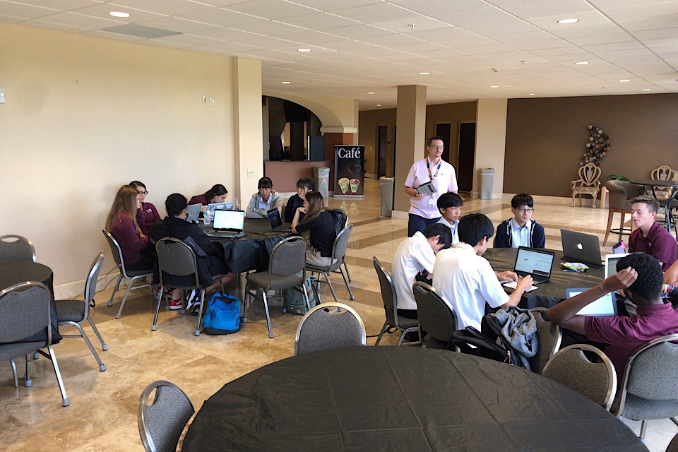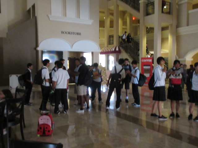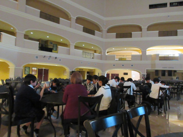 FCA6日目です。教室で授業を受けるだけではなく、アトリウムの広い場所で話し合いながら授業をすることもあります。アメリカの授業形態にも慣れてきた様子です。