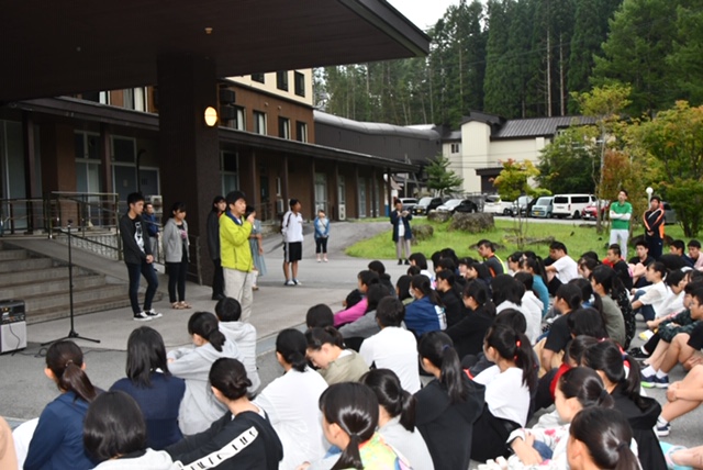 荘川の夜空は満点の星、星、星。天の川に流れ星、夏の大三角形、白鳥座などなど、生徒たちも星降る夜にうっとりです。