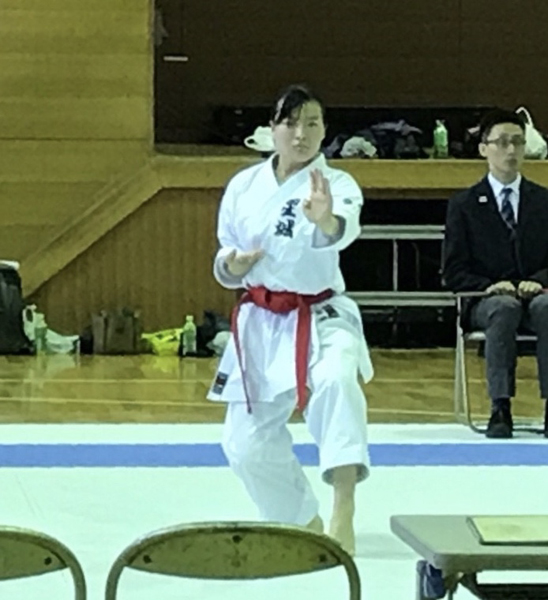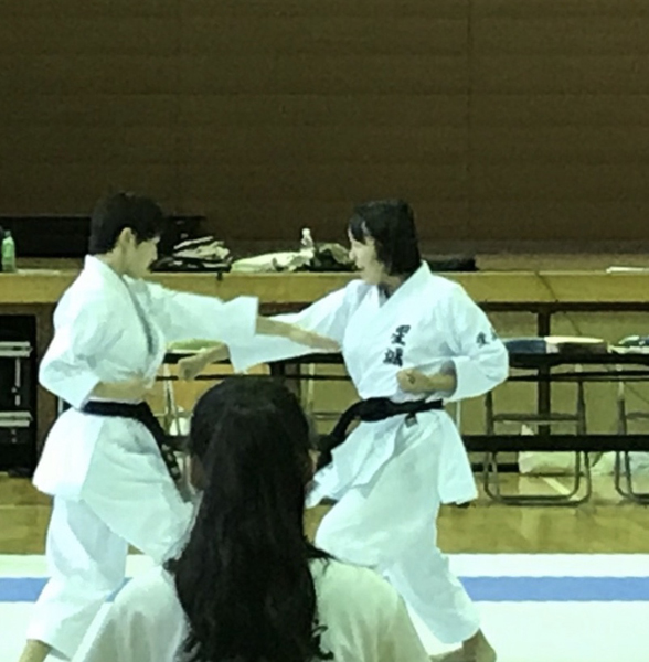 空手道競技に出場しているのは、3年の安藤実紅さんで少年女子組手と愛知県団体組手の二つのカテゴリーでの出場です。今回は卒業生で愛知学泉大学4年の兄、安藤優弥くんと兄弟コラボ出場です。