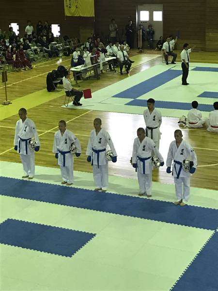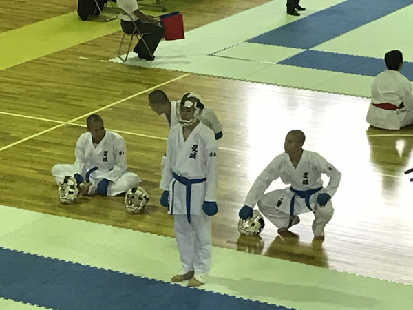 団体形に続き、個人形競技が行われました。例年は2日間で行われますが、台風が近付いている影響もあり、形競技は初日にすべて終わらせました。結果は下記の通りです。