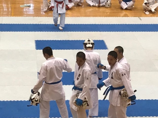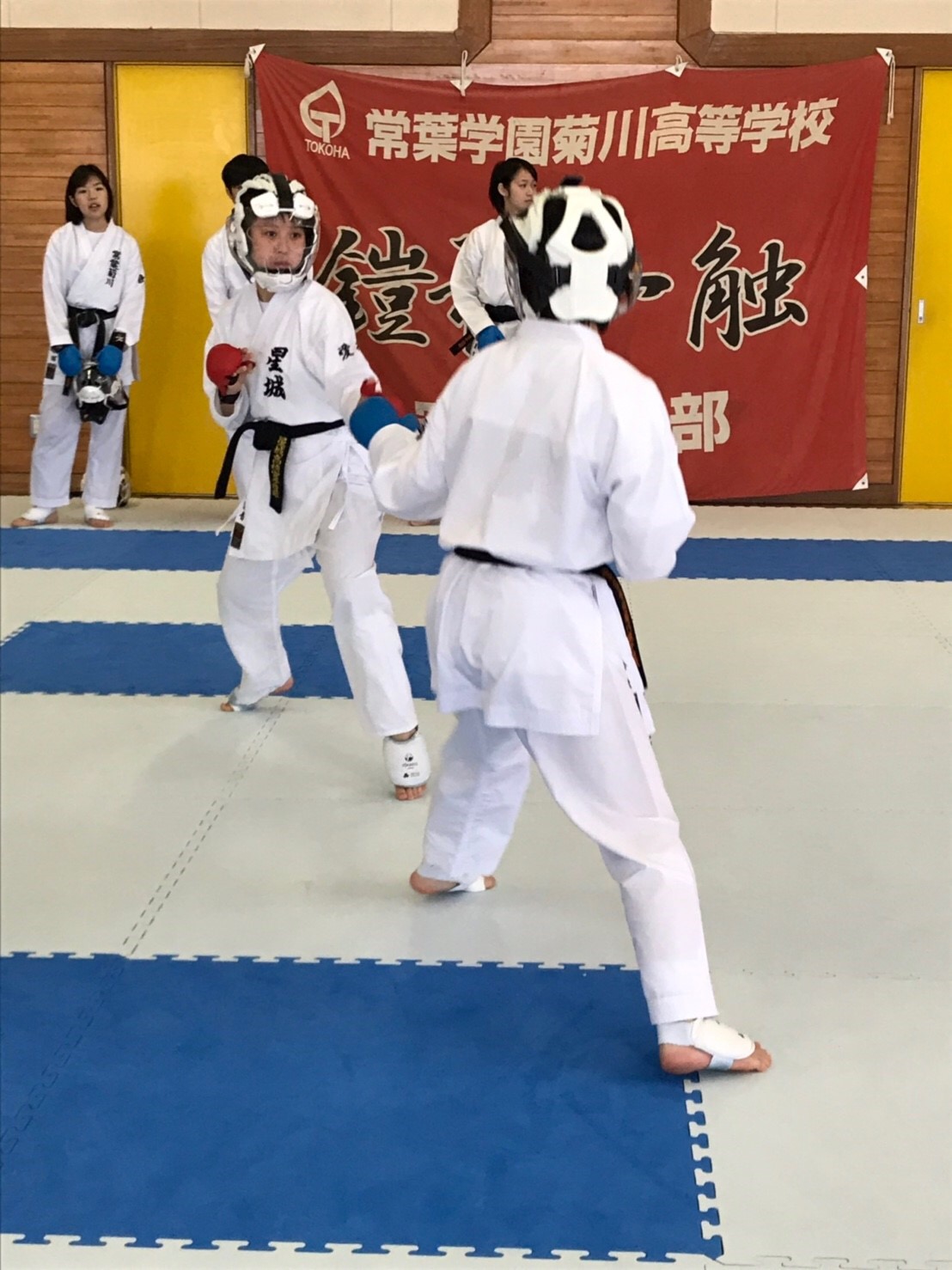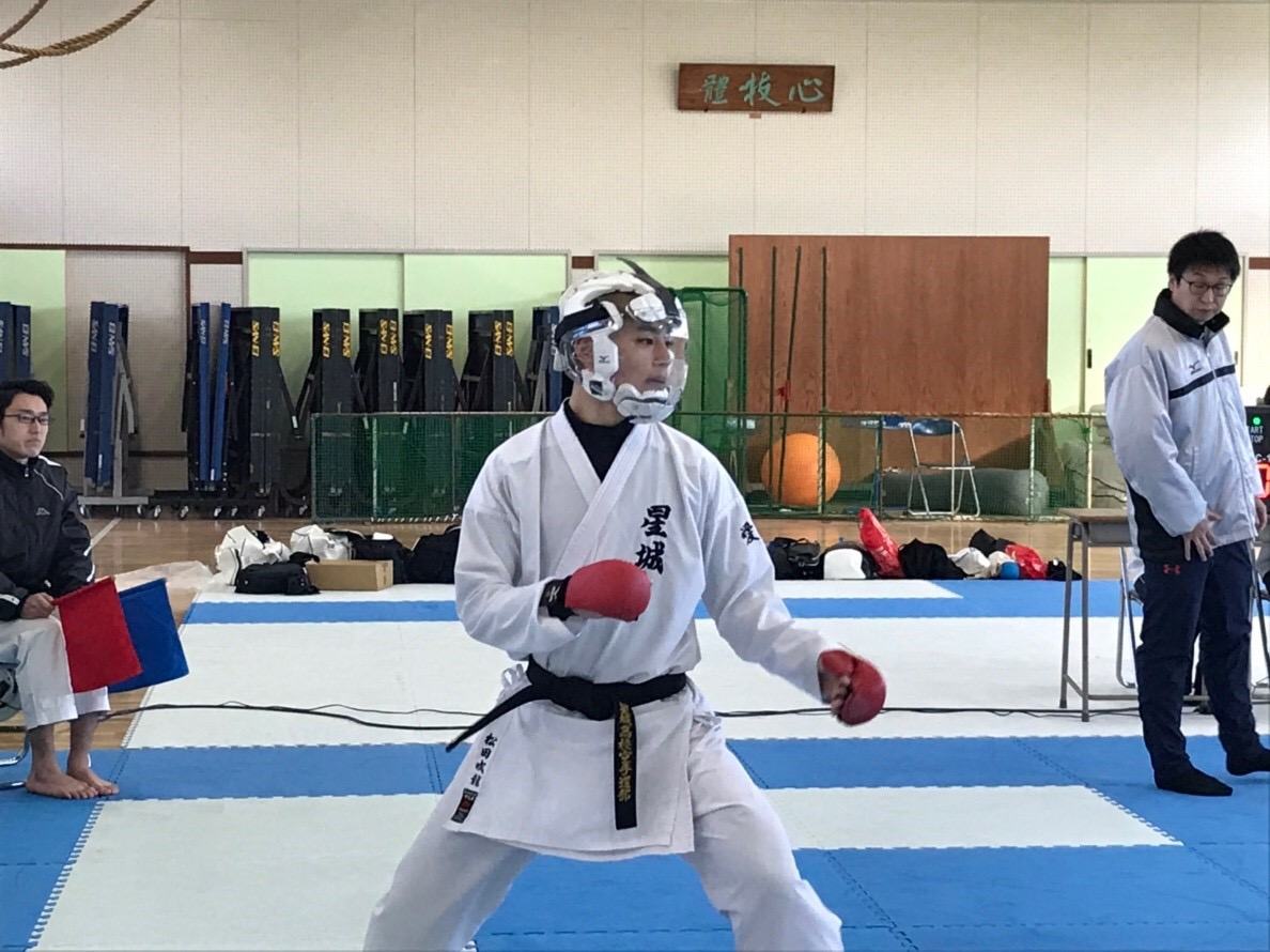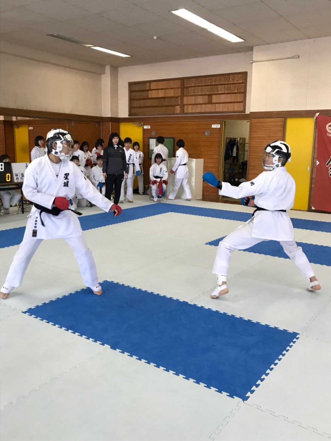 碧南市臨海体育館にて第13回星空杯争奪空手道大会が開催されました。今年度も多くの道場にご参加いただき、86名27チームの中学生が集まりました。選手の中には3月の中学選抜に出場するような高いレベルの選手もいました。道場の後輩たちのパフォーマンスに、高校生も刺激を受けたと思います。