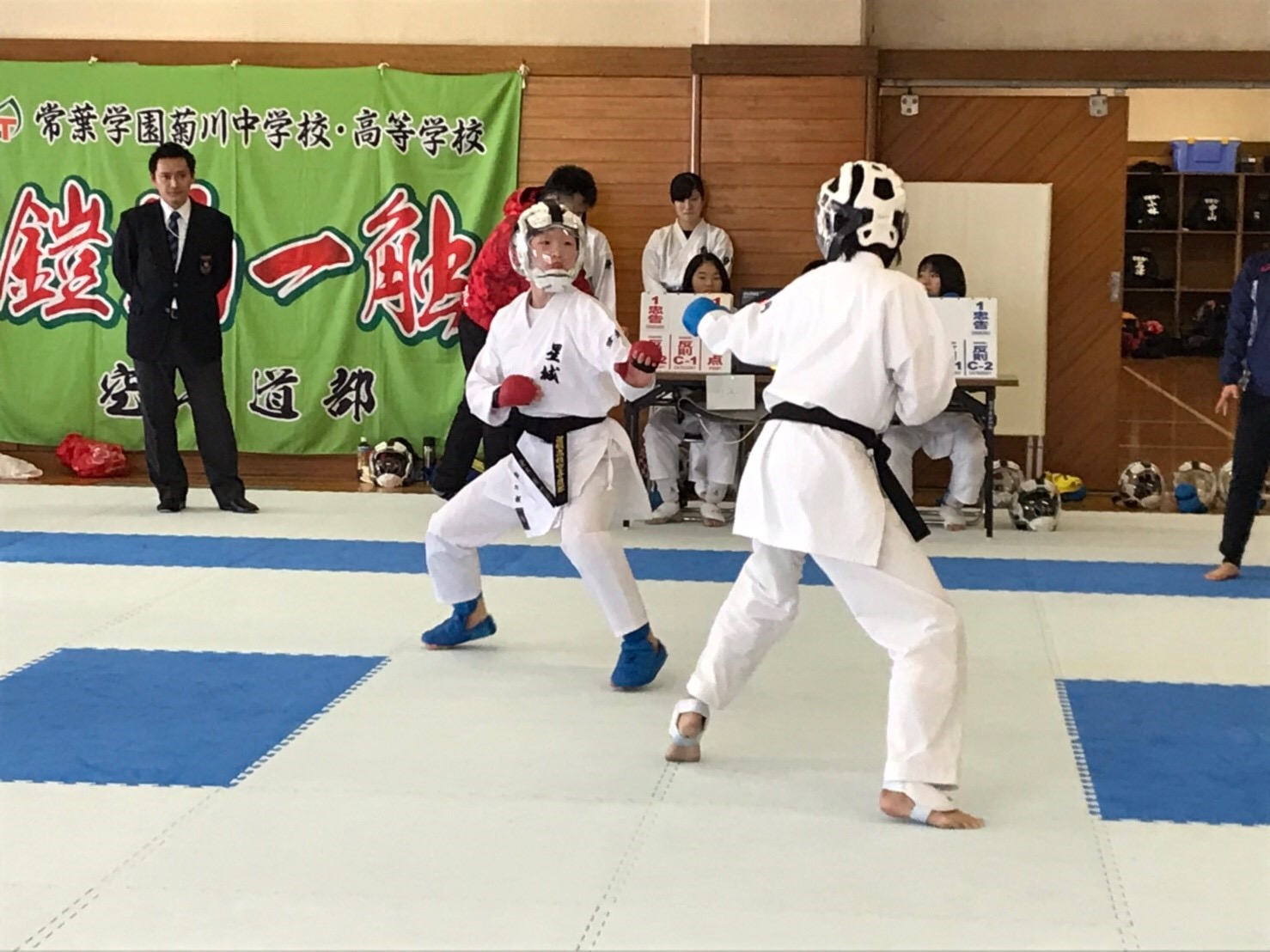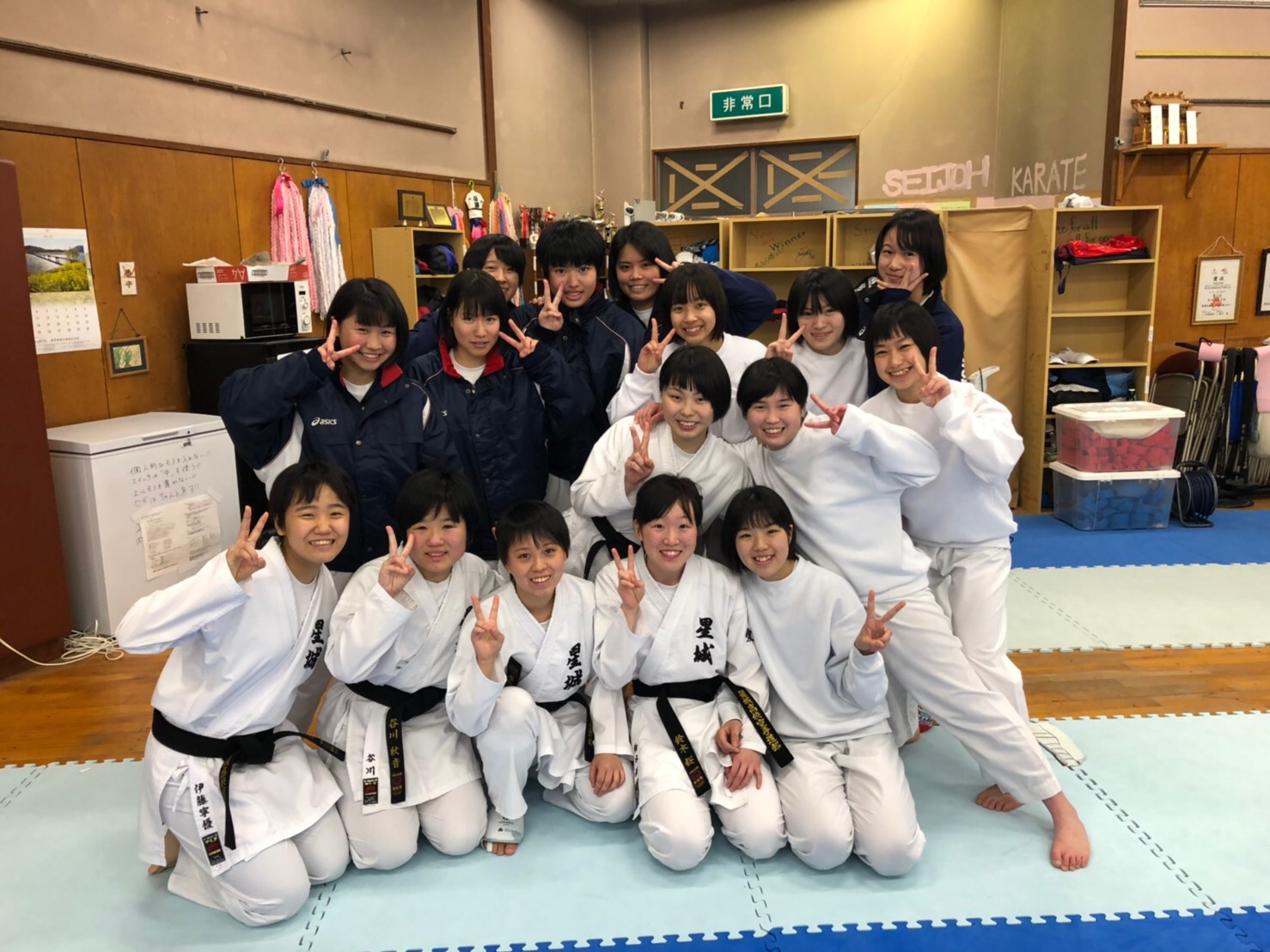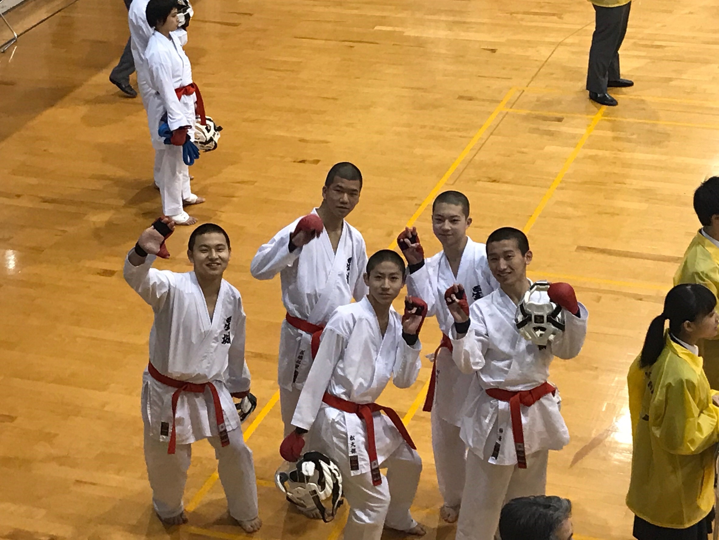 碧南市臨海体育館にて第13回星空杯争奪空手道大会が開催されました。今年度も多くの道場にご参加いただき、86名27チームの中学生が集まりました。選手の中には3月の中学選抜に出場するような高いレベルの選手もいました。道場の後輩たちのパフォーマンスに、高校生も刺激を受けたと思います。