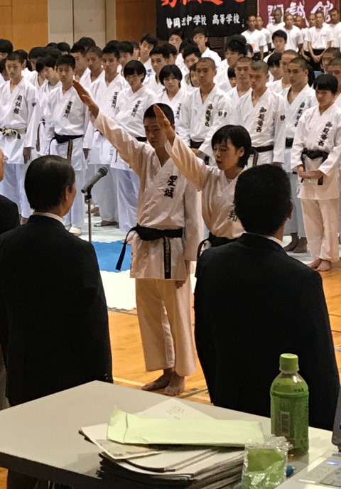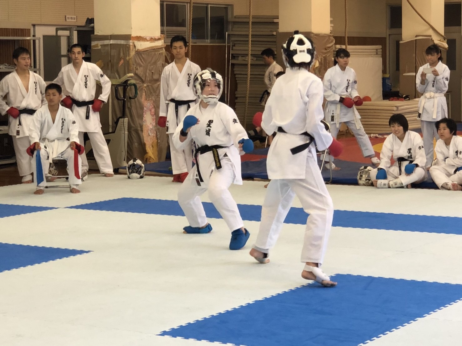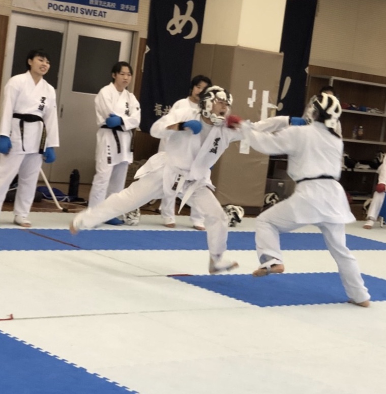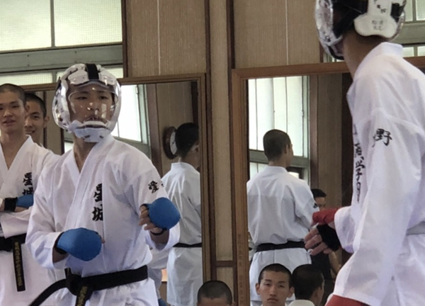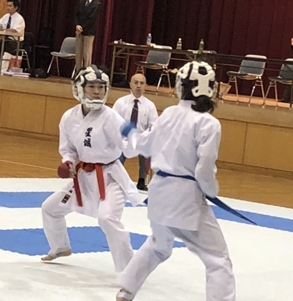 女子の団体チームは、今までは3年生5人が出場してきました。今回は2年生・1年生も出場させての勝負です。初戦は初の舞台に緊張する1・2年生もいましたが、後ろから先輩たちの後押しもあり、勝利することができました。準決勝は御殿場西に力負けしてしまいました。しかし、3年生組手選手にとっての、本当の最後の団体戦。敗退はしましたが、チームとして最後の団体戦を満喫してくれたと思います。