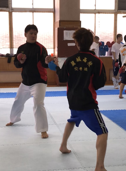 何故か若干のカレー臭が漂う本校空手道場で、新たなる挑戦としてキムチ鍋パーティーです。今回のゲストは、普段の練習前・練習後に率先して雑用をこなしてくれている1年女子部員。シェフは顧問の黄木です。暖かい鍋を囲み、身体も心もポカポカになってくれたと思います。