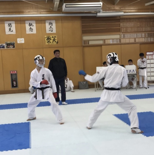 団体組手が終わった後に会場の外周をダッシュしている加古春哉・小嶋清太の姿を見かけました。指示した訳でもなく、偶然外の空気を吸いに出たところでダッシュしてました。加古と小嶋は私に気付いていませんでしたが、2人の1年生の自主的なトレーニング姿に救われました。1年生大会では、本大会以上の活躍をしてくれるのではないかと思います。