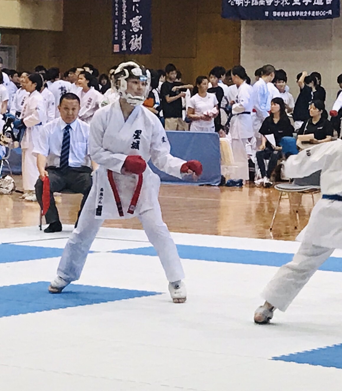 5/19、県総体2日目です。昨日に引き続き個人組手のベスト16からと、団体組手が行われました。結果を報告します。