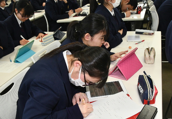 生徒たちは、メモをとりながら、真剣なまなざしで聴き入っていました。
