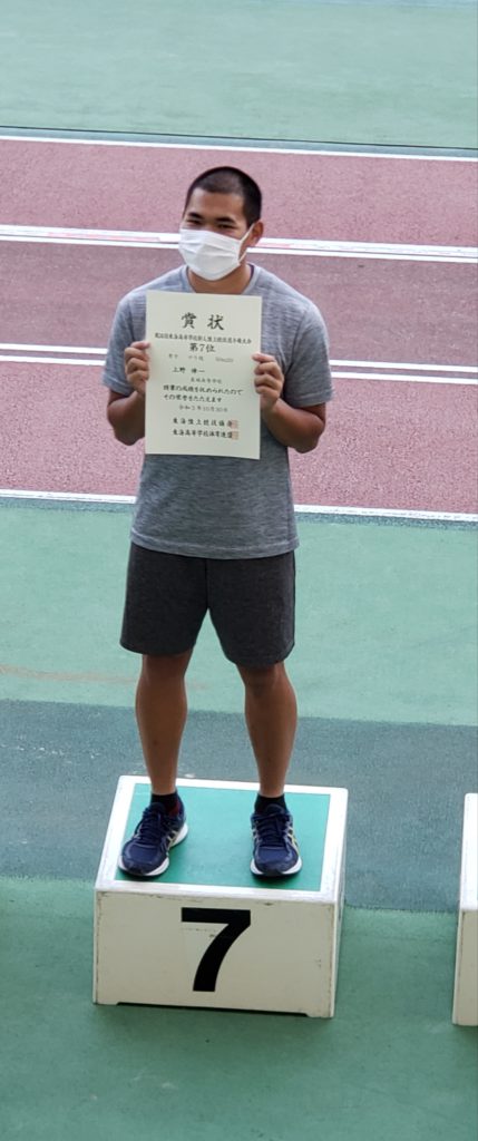 本校陸上部から2年の上野倖一君が男子やり投に出場しました。3投目で50m20を出し、7位入賞。陸上部にとって、とてもうれしいニュースとなりました。