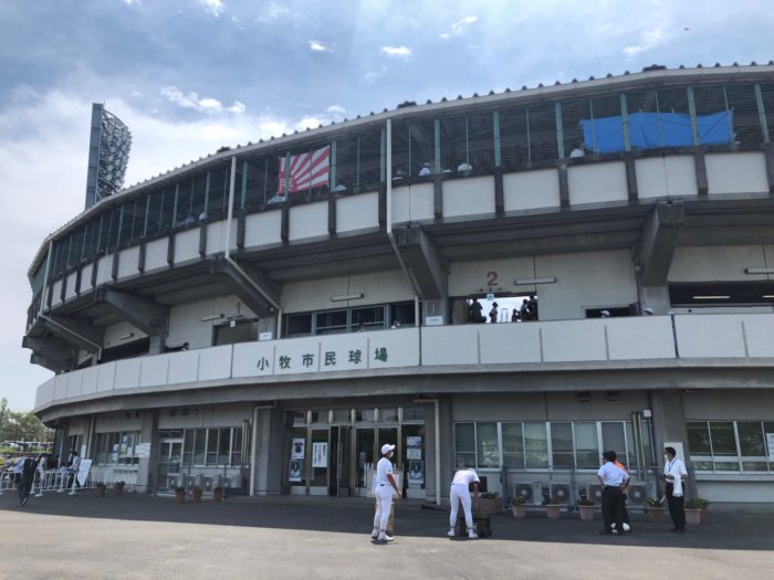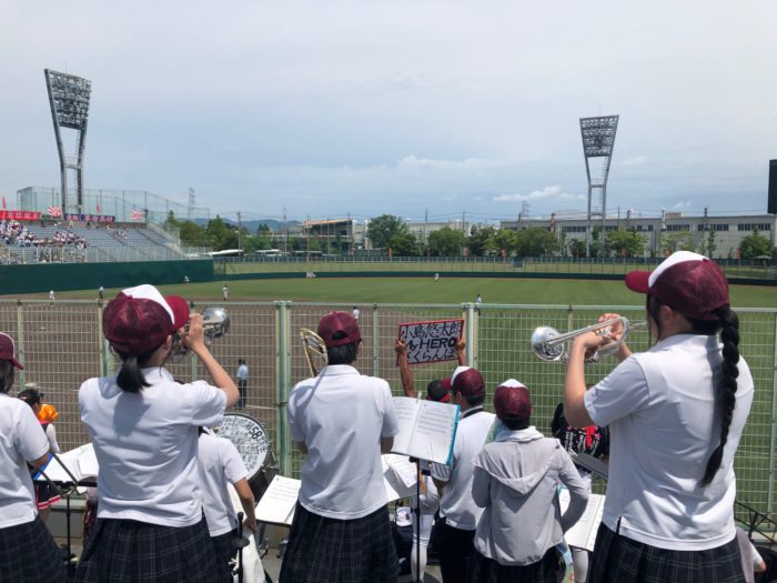 本日(7/26)、小牧市民球場で第104回全国高等学校野球選手権愛知大会準々決勝(6回戦)が行われました。享栄高校と対戦し4対7で残念ながら敗退となりました。3年生にとっては最後の熱い夏が終わりました。ベンチ入りした20人の選手、スタンドで心ひとつに戦った選手、マネージャー、全員が全力で戦って完全燃焼しました。3年生の思いは後輩が引き継いでいきます。球場へ応援にかけつけてくれたブラスバンド部のみなさん、ダンス部のみなさん、生徒のみなさん、保護者の皆様、OBの皆様、先生方、応援してくださったすべての皆様、本当にありがとうございました。