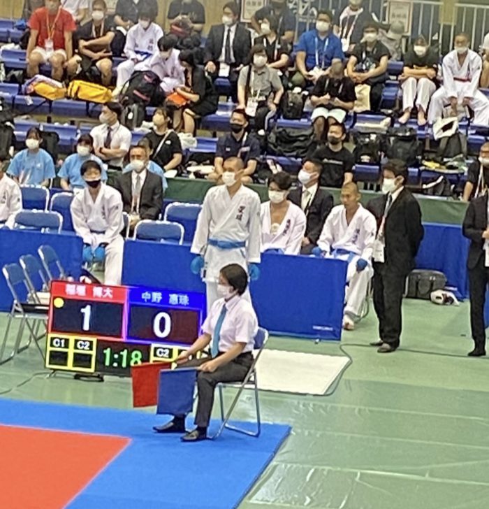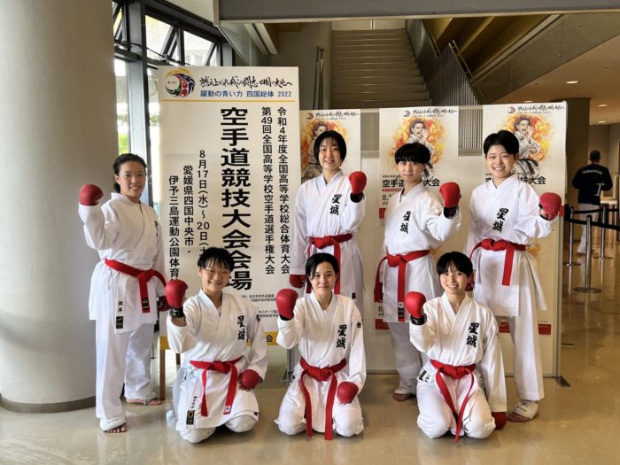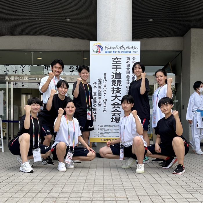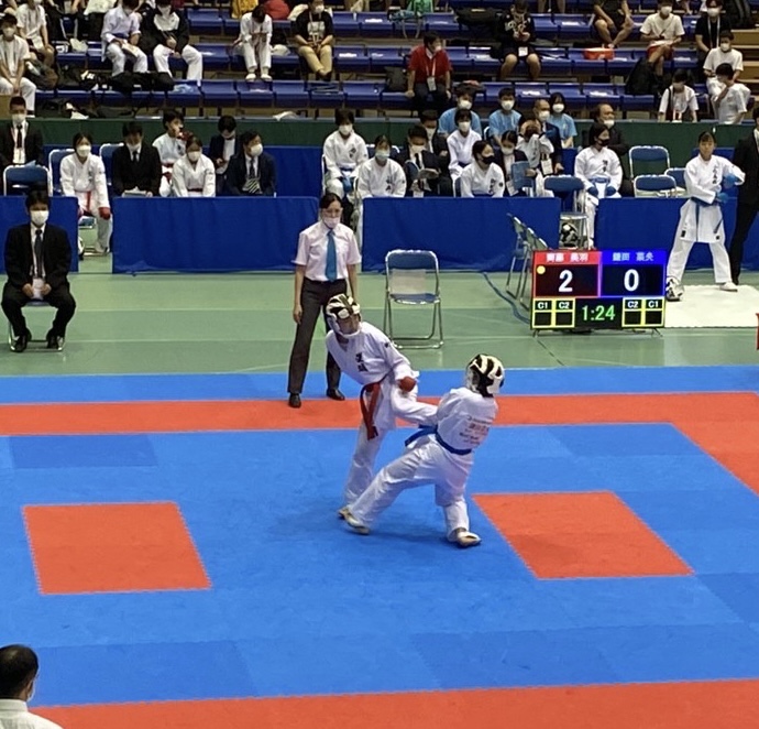 8/19、男女個人組手競技と女子団体組手競技が行われました。個人組手は、本校からは2年生の数井義英・澤田大和・齊藤美羽・鈴木志歩がエントリーです。結果を報告します。