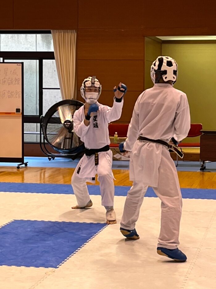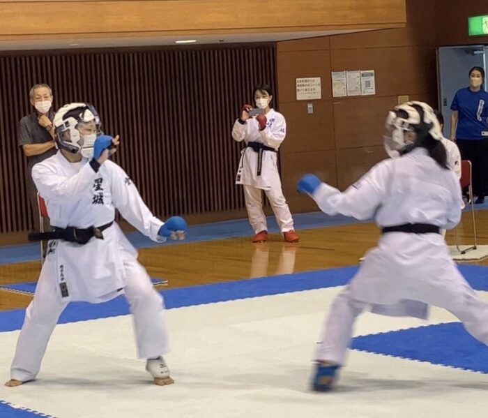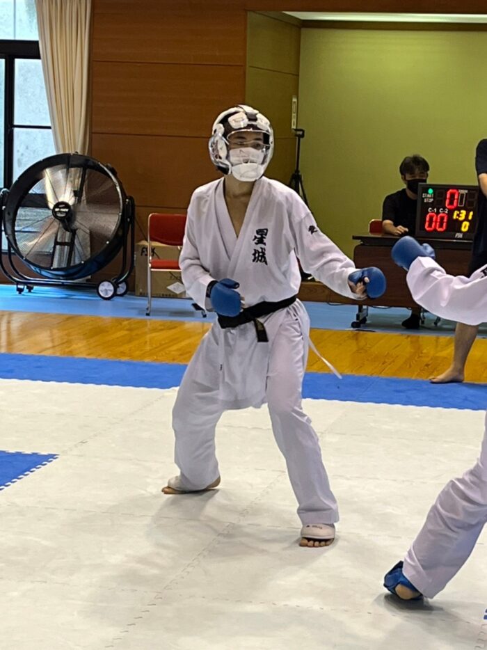 本日の監督推薦は、1年生の菱田悠斗と宮ノ腰優鈴です。菱田は、アグレッシブなパフォーマンスを重ねてくれました。この先が楽しみです。宮ノ腰は、形練習があるため他の部員より組手練習が不足しているなか、粘りを見せて勝ちをもぎ取ってくれました。