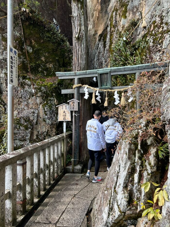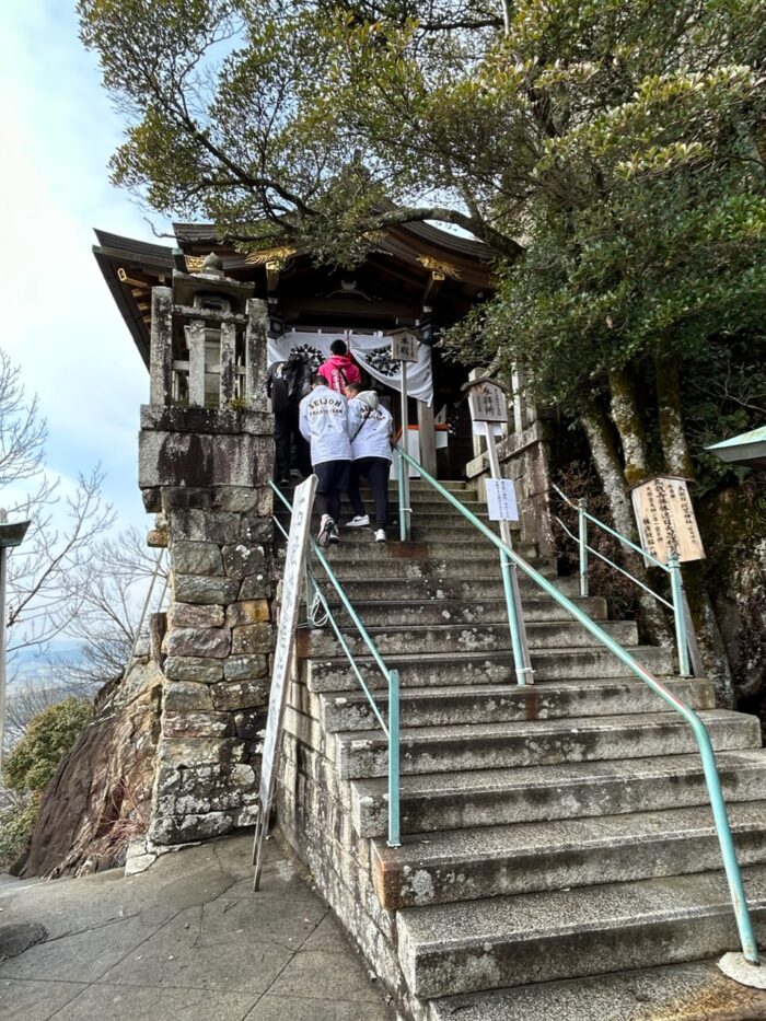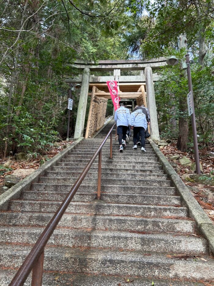 全国選抜まで1ヶ月となり、恒例の必勝祈願です。懲りずに阿賀神社の階段登りに挑戦しました。本日は男子選抜チームによる、階段登りです。高校生に負けないようにポーカーフェイスで登りましたが、やはり今回も年齢差を痛感してしまいました。若さが羨ましいです。