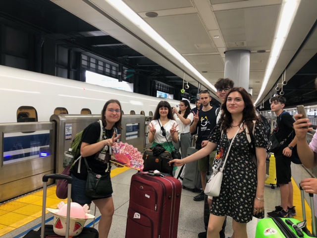 7月8日(土)9:55品川発のぞみ65号で名古屋駅に向かいます。初めての新幹線にみんな興味津々です。天気があまりよくなかったので富士山はみられませんでしたが、初の新幹線を堪能していました。