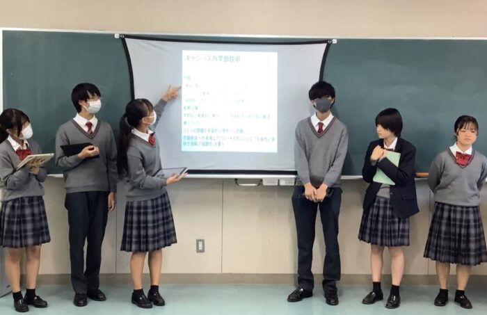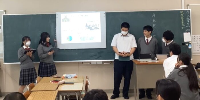 大学については、どんな学部があって、どのような授業が行われているか、具体的な内容を説明してくれました。また、キャンパスで見た施設や出会った大学生たちの様子など、実際に現地に行ったからこそわかったことや感じたことも紹介してくれました。他の班が見学してきた大学の様子を互いに知ることができるのは良いですね。来週の後半グループの発表も楽しみです!
