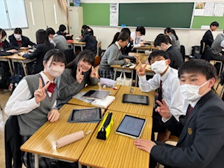 また、本日の活動のメインとして、「SDGs○○○」というキーワードを各班で設定し、クラスで1つのワークシートを作成しました。様々な視点からSDGsを見つめなおすことで新たな発見がありました。今後の自己分析に役立てていけることを期待します。