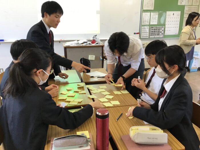 4/25 Today the second grade students had to conduct a team building activity whereby they were given sticky notes and had to write potential solutions to various regional and local situations. This activity was targeted at gaining a better understanding of varying challenging situations in addition to deepening friendships in the new classes and groups so to connect them to future activities and realise the importance of cooperation.