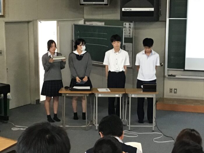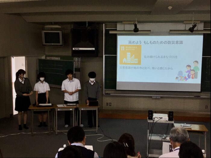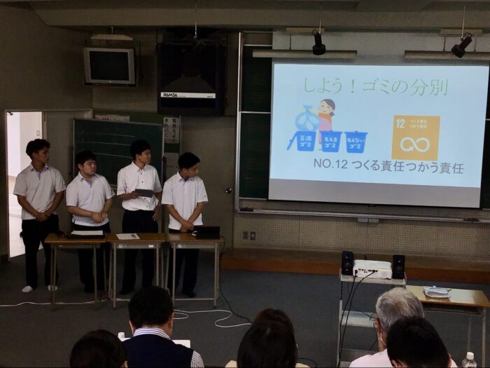 Students who choose the Okinawa course as their study trip destination will carry out the “Flower Road Project,” an ongoing project based on community and social contribution activities, environmental conservation activities, and community collaboration. The project will involve placing planters with slogans promoting understanding and awareness of the SDGs from the perspective of town and community development along the school route from Zengo Station to the vicinity of the Seven-Eleven Toyoake Sakaemachi store. At the slogan sharing event, students shared their slogans with classmates and collaborating organizations participating in the project, and received advice and feedback from the collaborating organizations on the content.