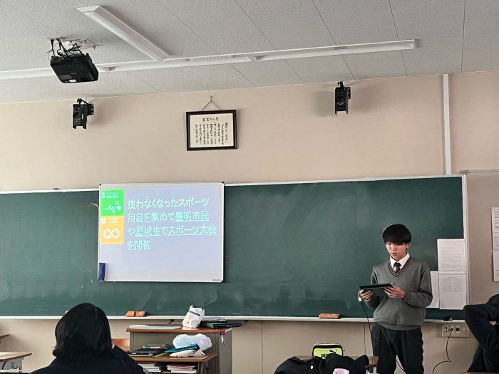 1/24 5.6限は、初めに「星夢キャリアデザイン」の発表の続きを行いました。今回は、発表者が各クラスに移動しての発表です。SDGsの発表を行った班は、「3すべての人に健康と福祉を」、「12つくる責任つかう責任」に着目してスポーツ用品を集めてスポーツ大会を開催する企画を発表していました。他にもメニュー開発の発表を行った班は「韓国料理のワンプレート」を提案していました。高校生に人気な韓国と活力をつけることのできる料理を合わせることで、学食で人気が出るのではないかと考えていました。