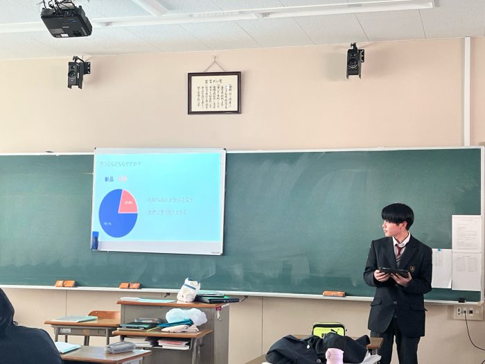 前回の発表と同様に良い発表が見られました。発表を聞いている生徒も興味をもって聞くことができ、質問や感想も出ていました。