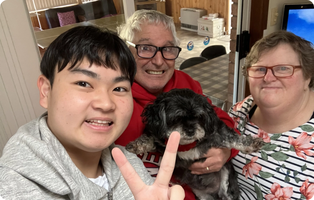 初めての外国でのホームステイでとても緊張していました。でも、ホストファミリーが迎えに来てくれた時、ホストブラザーズも一緒に来てくれて、彼らが笑顔だったのでとても緊張がほぐれました。ステイ中もブラザーズと一緒に遊びました。弟の方はスイミングスクールに通っていて、その様子は日本と変わりませんでした。しかし、生活スタイルは日本と違ったところが多かったです。