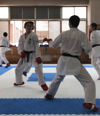 長かった梅雨も明け、夏休みらしい、蝉の声が響き渡るようになりました。インターハイまで2週間をきり、少しずつ気持ちも高揚してきています。今週からは就職希望者の面接練習が始まり、団体組手メンバー2人が不在ですが、代わりに東邦高校から3年生2人が練習に参加してくれました。2ヶ月前、沖縄インターハイをかけて激戦を繰り広げたライバルであり、沖縄の地では、同じ愛知県を背負って戦う仲間です。