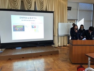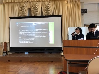 1班は、「A brighter future of the victims of defoliants」と題して、ベトナム修学旅行時に実際に聞いたドクさんのお話やベトナムでの戦争証跡博物館で得た情報をふまえ、枯れ葉剤被害者に対する支援をより充実したものにするための方法を検討し、発表を行いました。