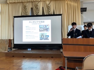 6班は、「Problems with garbage disposal in Vietnam」と題して、ベトナムで起きているゴミ問題における課題を抽出し、提言を行いました。7班は、「Let’s learn about the current situation in Cambodia」と題して、カンボジアにおける子どもの教育や健康管理に対する課題を抽出し、提言を行いました。