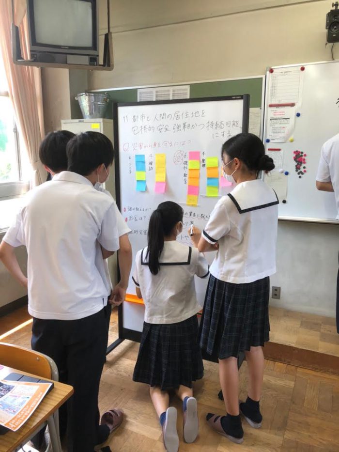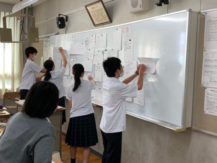 ブレインストーミングによってアイデアを出し合い、KJ法を用いてそのアイデアをまとめるという形でのディスカッションは、その形式に慣れてくると、自由で柔軟な意見・考えが入り交じり大変充実した学び・探究活動となりました。