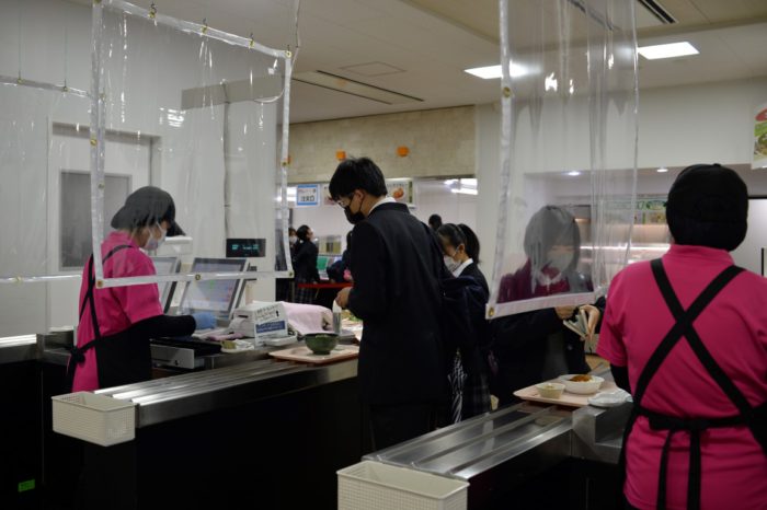 午前中に、講堂において大学の組織や学び、施設等の説明を受け、その後、食堂体験と施設見学(自由行動)を行いました。午後からは、再び講堂で野田学長と本校出身の先輩方からのお話を聞くことができました。