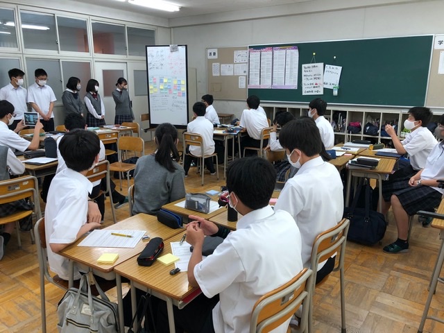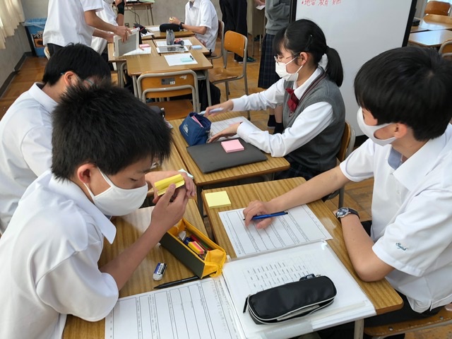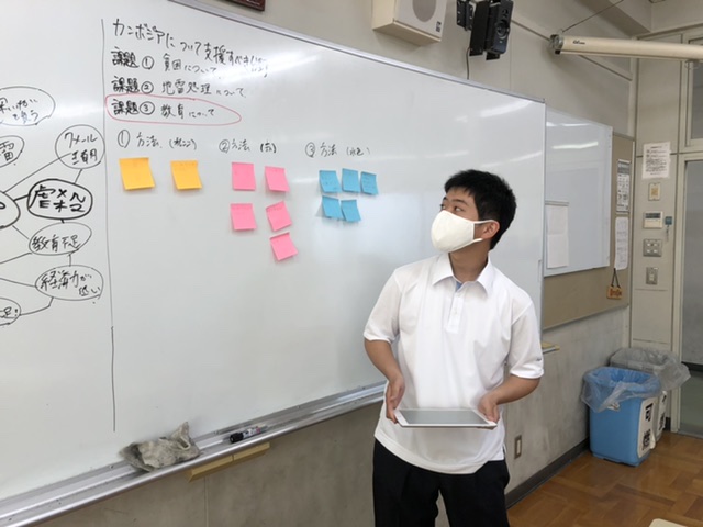 カンボジアについての学習では,地雷や貧困,教育に関わる解決しなければならない問題があることを知りました。そしてその問題について,私たちにできる支援を各班で考える活動に取り組みました。ビデオなどを通して知ったカンボジアの現状に,様々なことを考えさせられました。