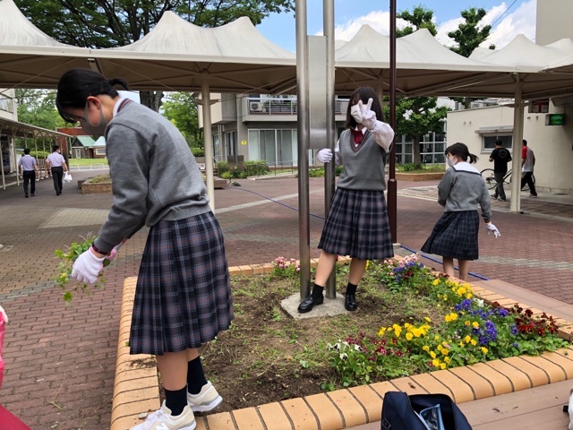 本日のSGL活動では,カンボジアについて学んだ後,校外へ出て花を植える場所の下見・簡単な整備を行いました。