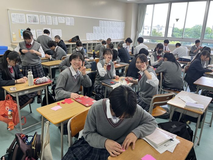 研修旅行(沖縄コース)にて予定されている平和学習で持参できるように、第2年全員で平和への第1歩として黙々と作成してくれました。