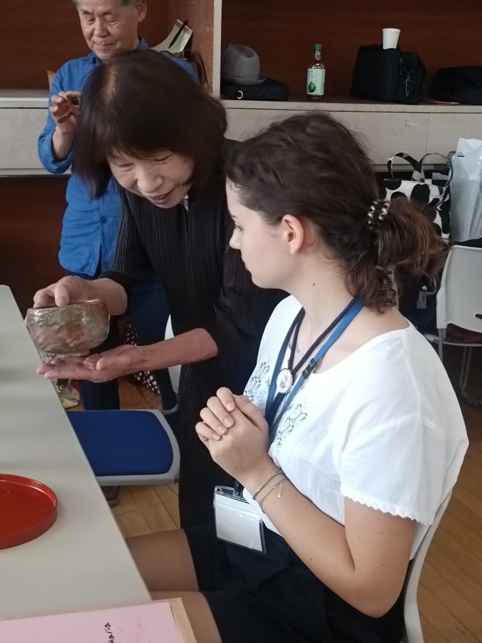 生徒たちは、まず亭主の丁寧なお点前をじっくりと見学。その後、自分たちでも茶筅を使って抹茶を点ててみました。「簡単そうに見えたけど、実際はとても難しい!」という声があがりながらも、和やかな雰囲気の中で楽しむ様子が見られました。