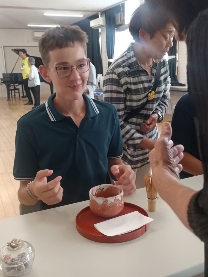 最後に、出来上がった抹茶を一口。「少し苦いけど、とてもおいしい!」と笑顔を見せる生徒たち。味わうだけでなく、所作や心配りを学ぶ茶道体験は、日本文化の奥深さを感じる貴重なひとときとなりました。