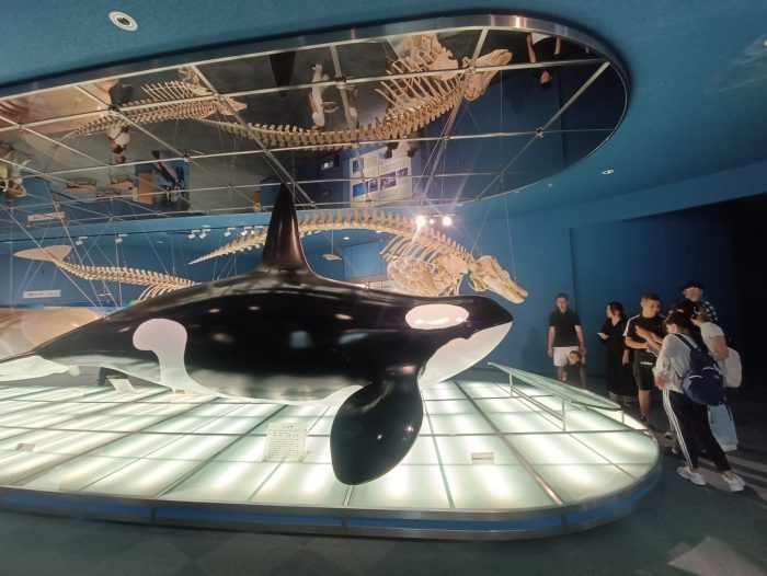 館内では、シャチやイルカの迫力あるショーに大興奮!特にシャチのダイナミックなジャンプに歓声が上がりました。さらに、白イルカの可愛らしい姿や、世界各地の魚たち、ペンギンやウミガメの姿も楽しみました。サンゴ礁とそこに暮らす多様な生き物を再現した展示もあり、生徒たちはその豊かな生態系に感動していました。