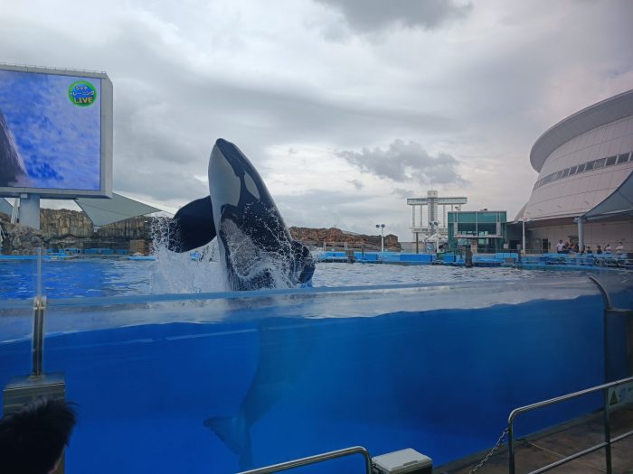 また、一部のコーナーでは生き物に触れる体験もあり、「やわらかい!」「冷たい!」と驚きながら笑顔があふれました。前列でショーを見ていた生徒たちは、シャチの水しぶきでびしょぬれになるハプニングも!「これもいい思い出!」と、笑いながら帰路につきました。