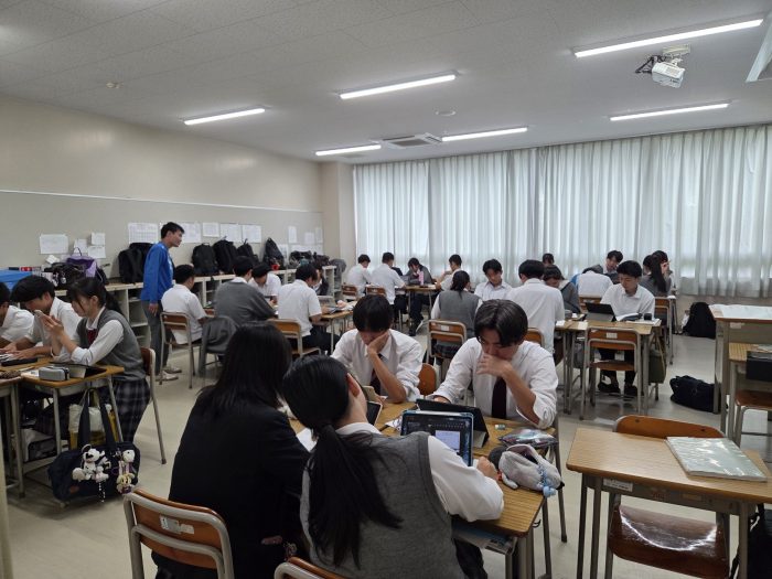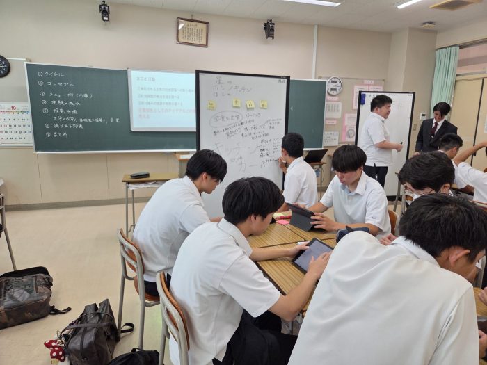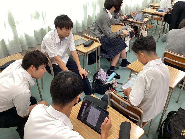 今日は来週に迫った探究DAYに向けて、最終確認を行いました。活動中に起こりうるトラブルを想定し、「忘れ物をした」「体調が悪くなった」「電車が遅れた」「昼食のお店が混雑していた」などの事態への対策を班ごとに話し合い、共有しました。さらに、完成したパンフレットをお互いに説明し、誤りや情報の抜け、見づらい箇所がないかを丁寧にチェックしました。また、Googlechatを用いて連絡を取る際の説明も行いました。初の試みとなりますが、写真係を初めとして、班員と声を掛け合って行動してほしいと思います。