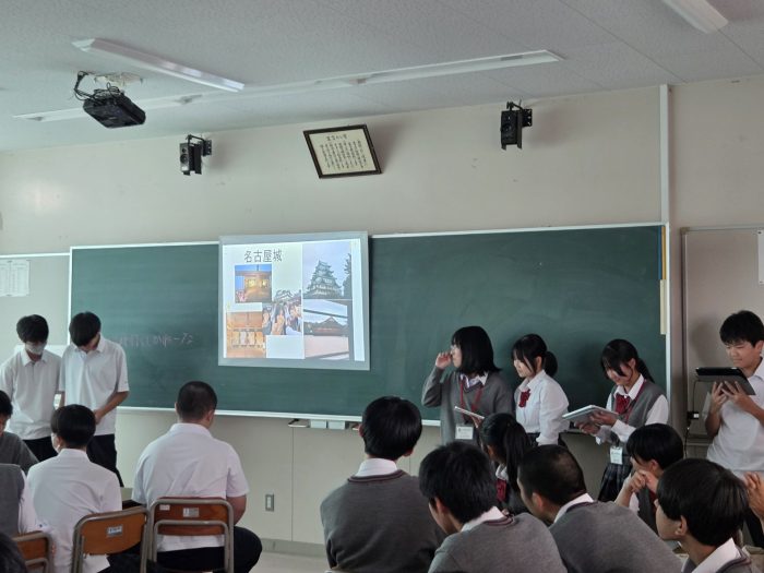 本日の授業は探究DAYの振り返りとまとめでした。探究DAYでの失敗や成功を来年度の研修旅行に活かすために、クラスで活動当日の反省・成功体験を共有しました。また、探究DAYで訪れた名古屋城+各研修先の内容をスライドにまとめ、当日活動したメンバー以外のクラスメートと簡単な発表を行いました。教室で普段学ぶことではなくて、自身の目で見て、体験して得た経験は何物にもかえられない貴重なものだったと思います。 今回の探究DAYは我々教員も多くの学びを得られる行事でした。今回得た学びをこれからの授業、来年度の研修旅行に活かしてほしいと思います。